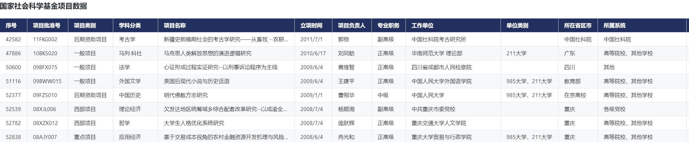 2019.07.15前所有国家社科基金项目数据