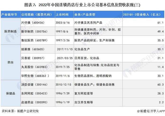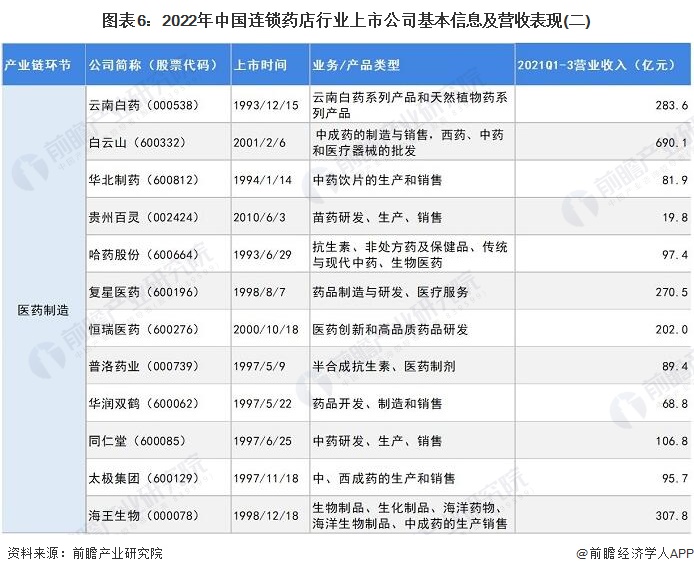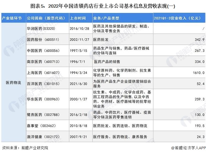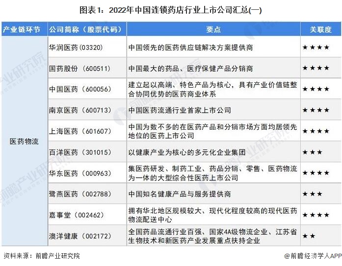 1、连锁药店行业上市公司汇总