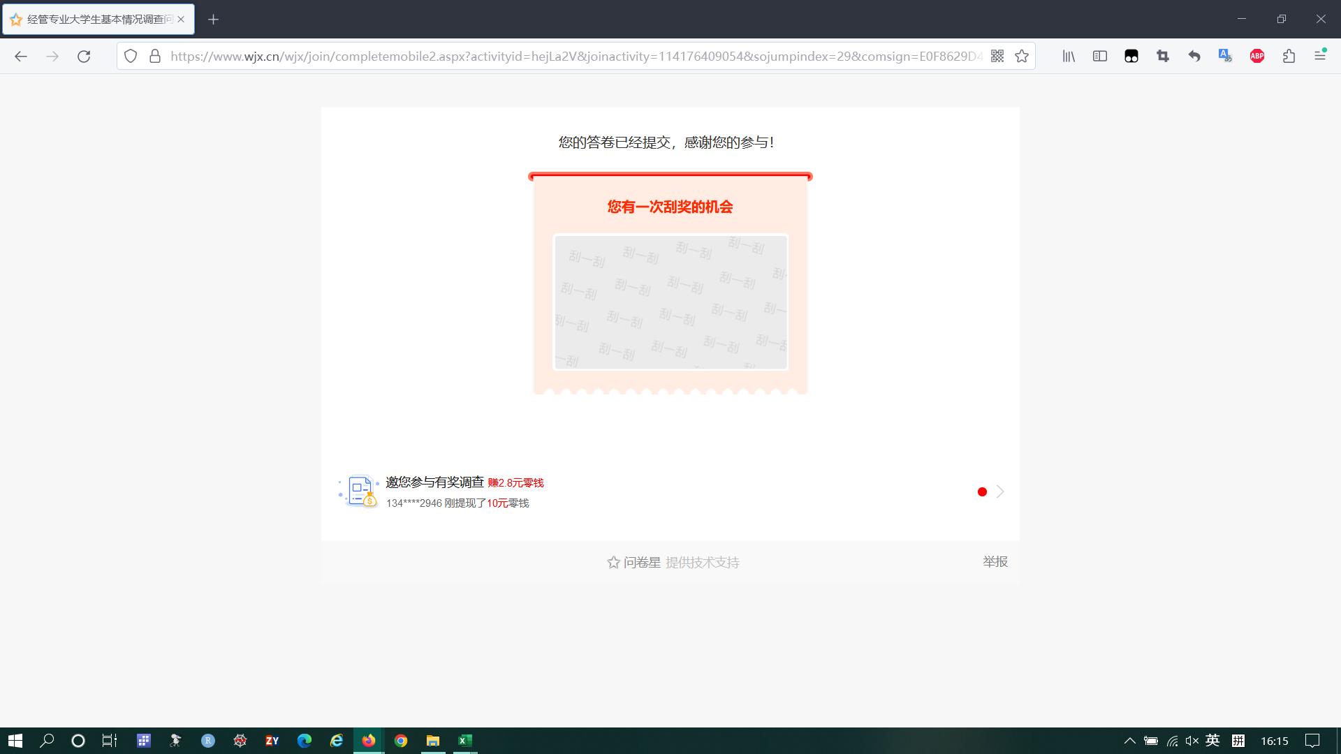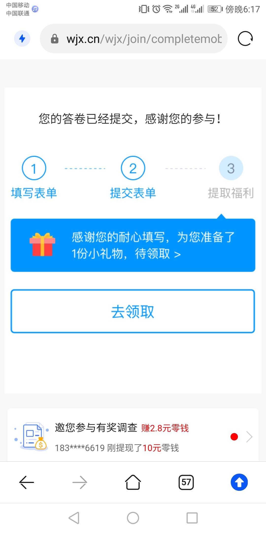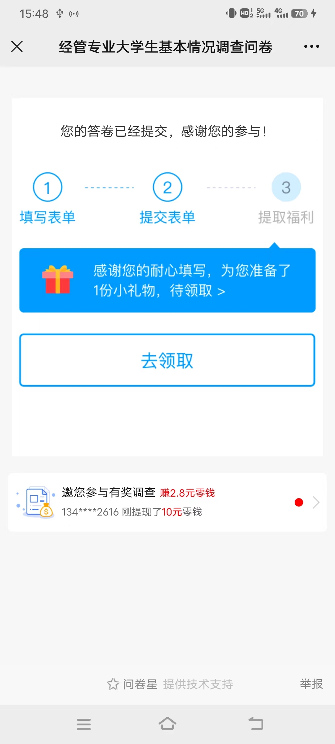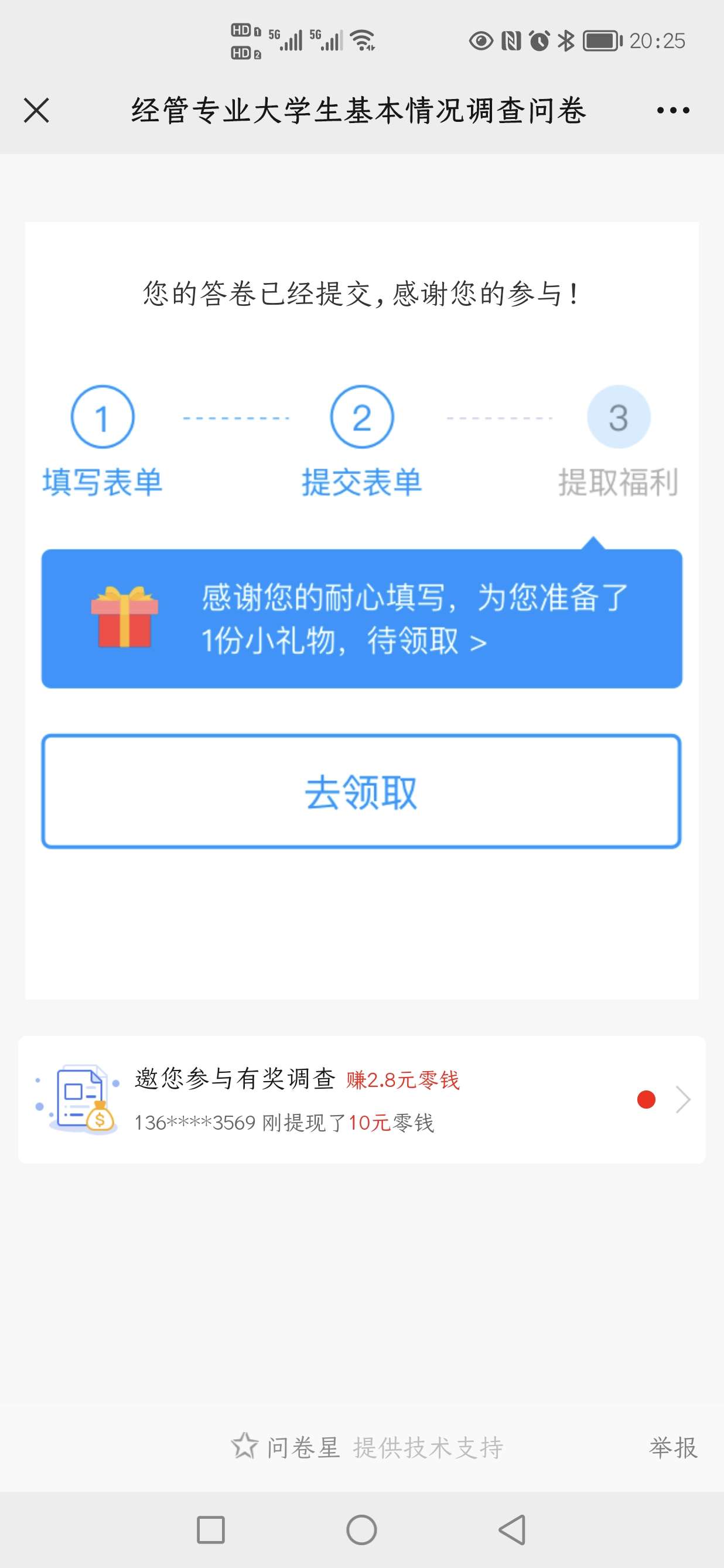 完成问卷调查截图