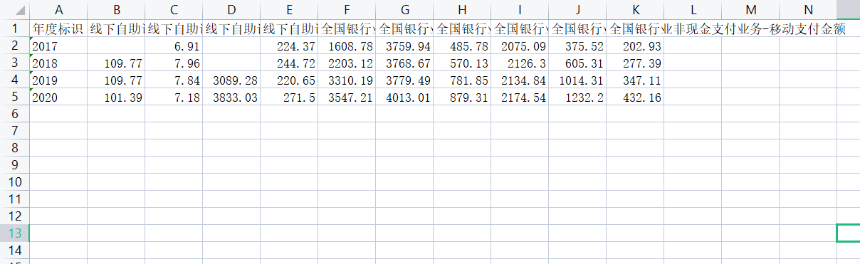 | [全国银行业非现金支付业务-移动支付金额] | null |