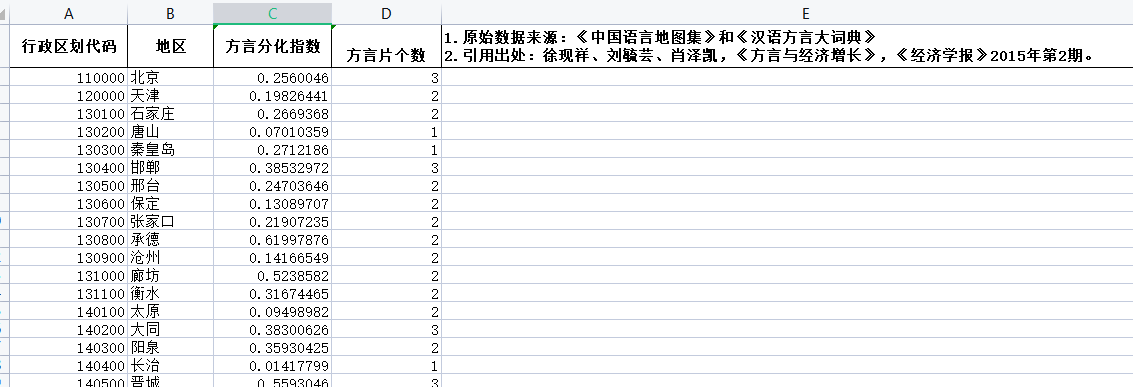 徐现祥,刘毓芸,肖泽凯.方言与经济增长[J].经济学报,2015,2(02):1-32.