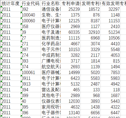 2011-2020年总体情况科技创新分行业高技术产业专利情况(年).xlsx
