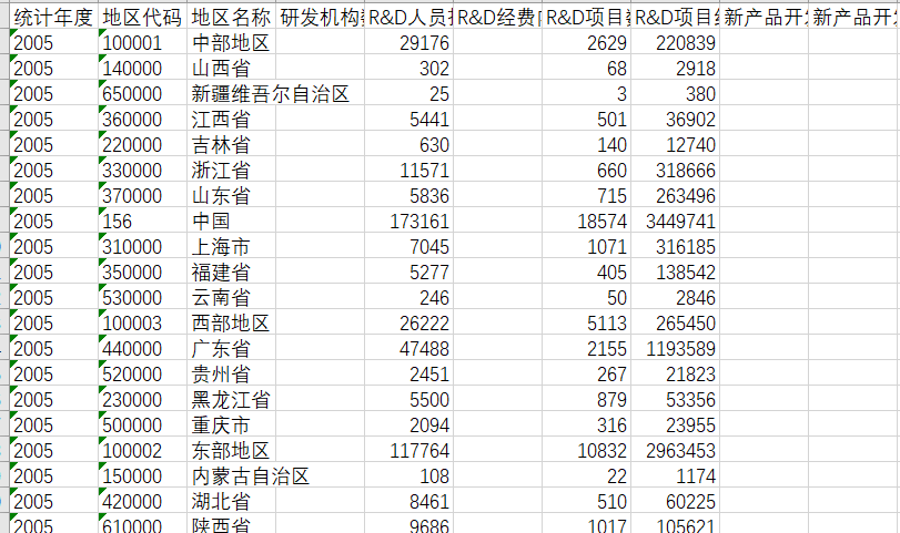 2005-2020年总体情况-科技创新-各地区高技术产业研发情况(年)