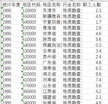 1995-2020年总体情况人力投入各地区按行业分职工人数(年).xlsx
