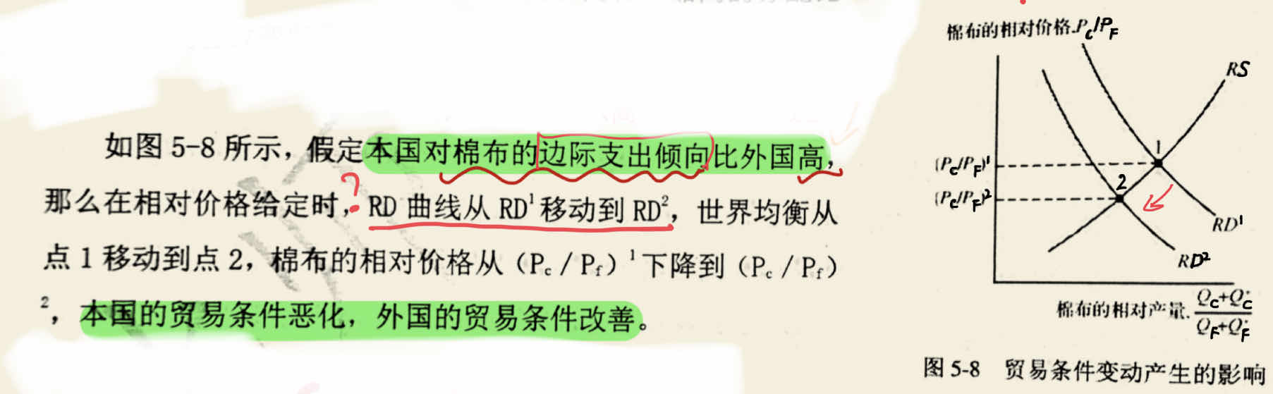 本国对棉布的边际支出倾向比外国高,为什么“RD曲线会从RD1移动到RD2”呀?麻烦了!