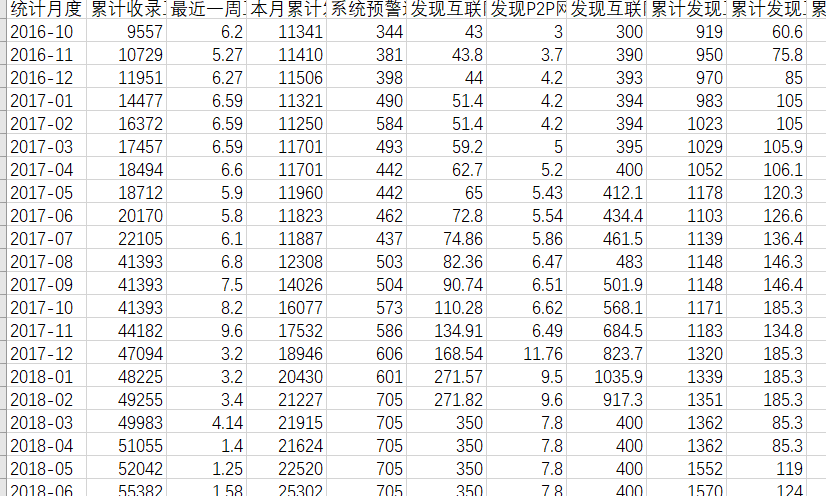 | [本月累计发现存在异常的互联网金融网站] | null |
