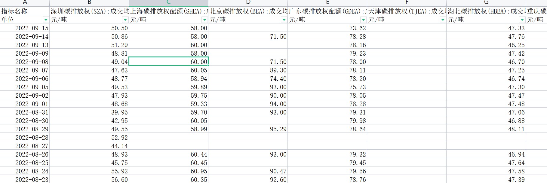碳排放权成交均价.xlsx