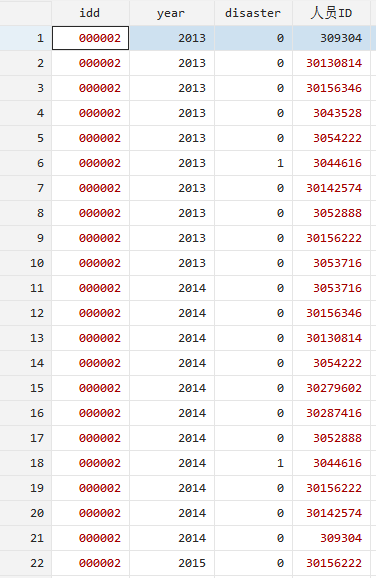 白眉老夫子 发表于 2022-9-27 16:58 分年和 idd 汇总idd的数量,然后在分年汇总disater的数量,再做比值。 gen z = 1 bys idd year : egen ...