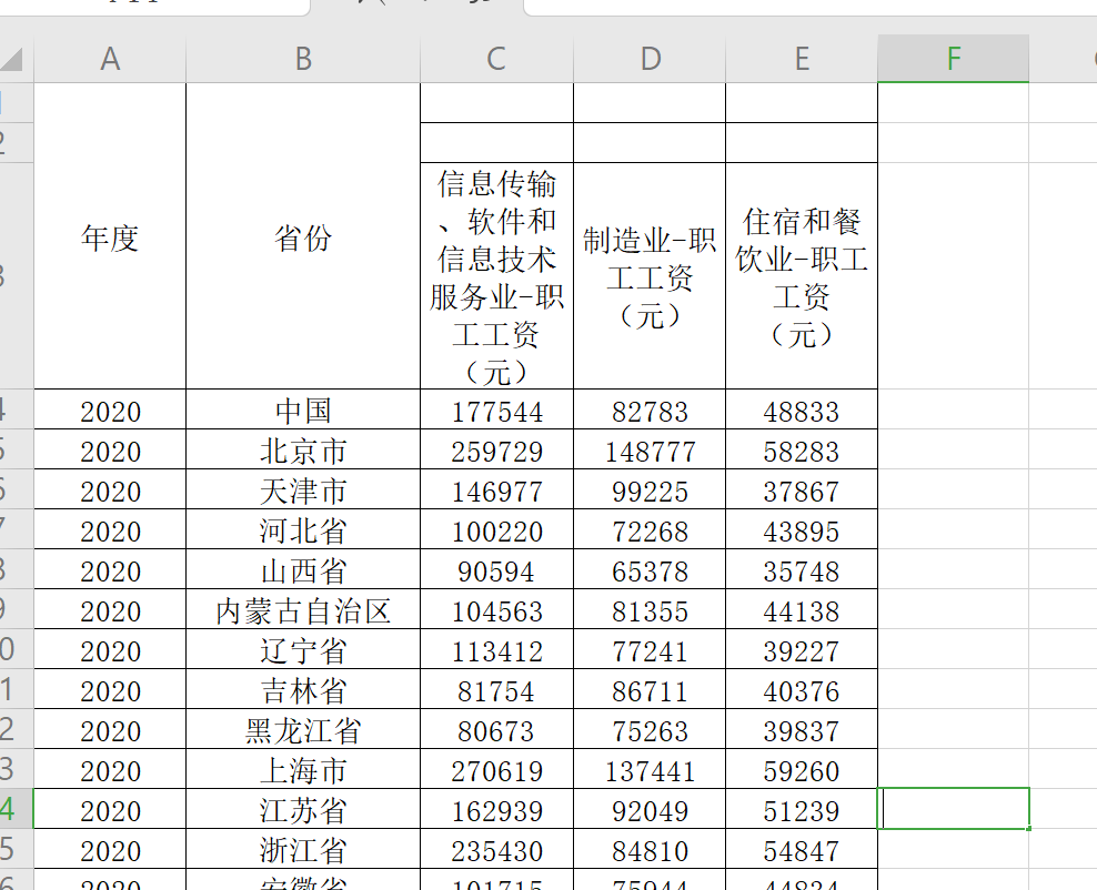 指标包括:信息传输、软件和信息技术服务业-职工工资(元) 制造业-职工工资(元) 住宿和餐饮业-职工工资(元)