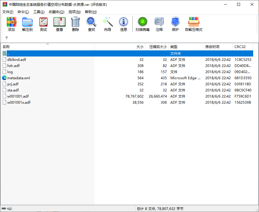 中国陆地生态系统服务价值空间分布数据水资源气体水文调节净化环境土壤保持食物原料生产