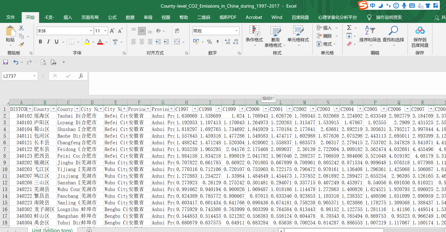 三.1997-2018年全国分省份碳排放数据