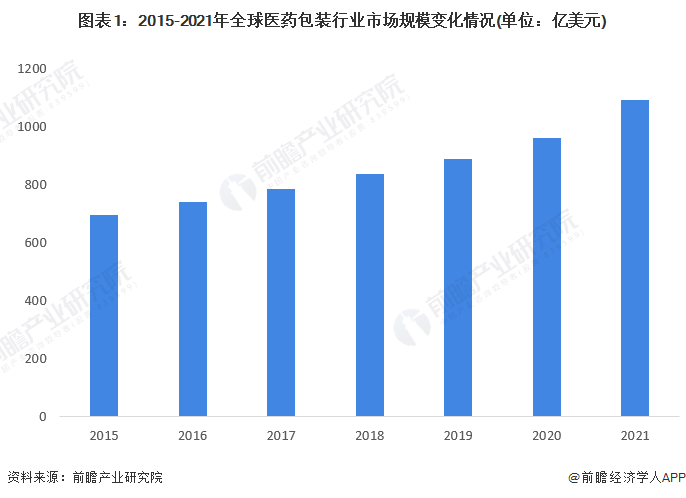经过初步估算,2015-2021年全球医药包装行业市场规模逐年上升,且到2021年,全球医药包装行业市场规模为1093亿美元,年平均复合增长率为7.87%。