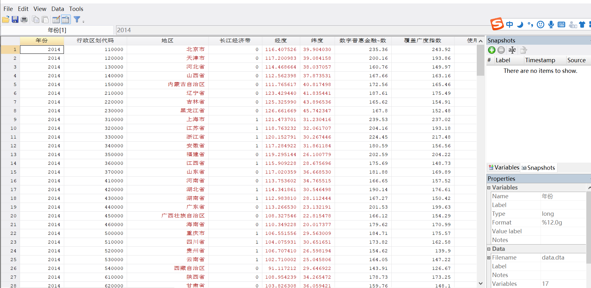 数据样本:31个省份*6年=186条