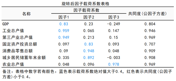 可以看到,本案例的共同度指标在0.707~0.969之间,表现良好(一般要求大于0.4或0.5)。