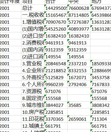 2001-2018税收收入分税种分级次情况.xlsx