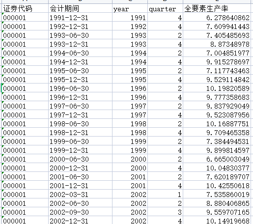 沪深主板中小企业科创业板上市公司全要素生产率TFP1990-2020