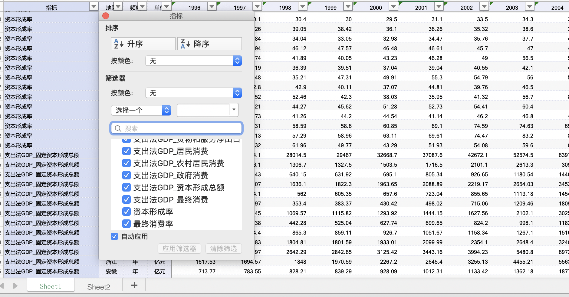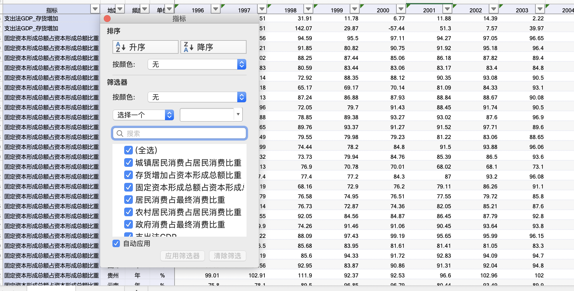 4、指标说明:支出法地区生产总值GDP、支出法GDP_最终消费、资本形成率、最终消费率、居民/政府最终消费等等(指标较多,详见下文图片展示)