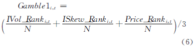 IVol_Ranki,t,ISkew_Ranki,t,Price_Ranki,t分别代表股票i在t月的特质波动率排名、特质偏度排名和股票均价排名。