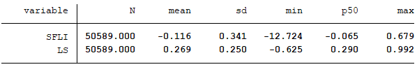 ngq760856 发表于 2022-10-11 17:05 你好,请问为什么SFLI的描述性统计与上述列示文献报告的范围相差很大呢?文献中最小值一般都在-1左右,但您 ...