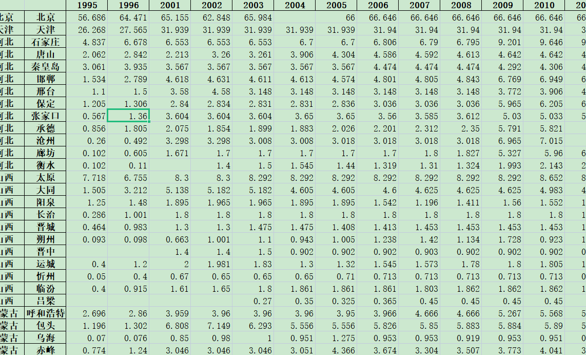 地级及以上城市2001——2020年出租车数量(其中存在个别数据缺失)