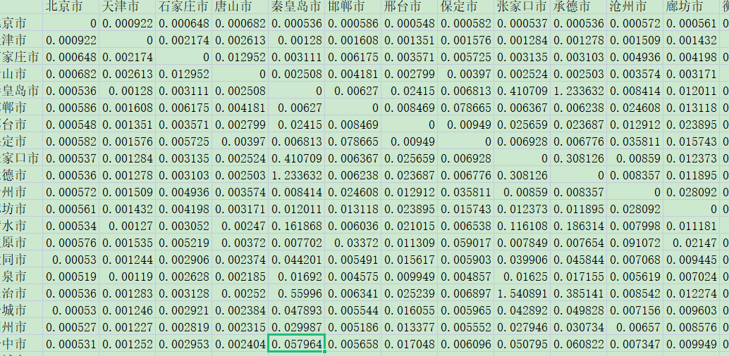 【低价分享】中国278个地级市地理距离矩阵、反距离矩阵、经济距离矩阵和经济地理矩阵