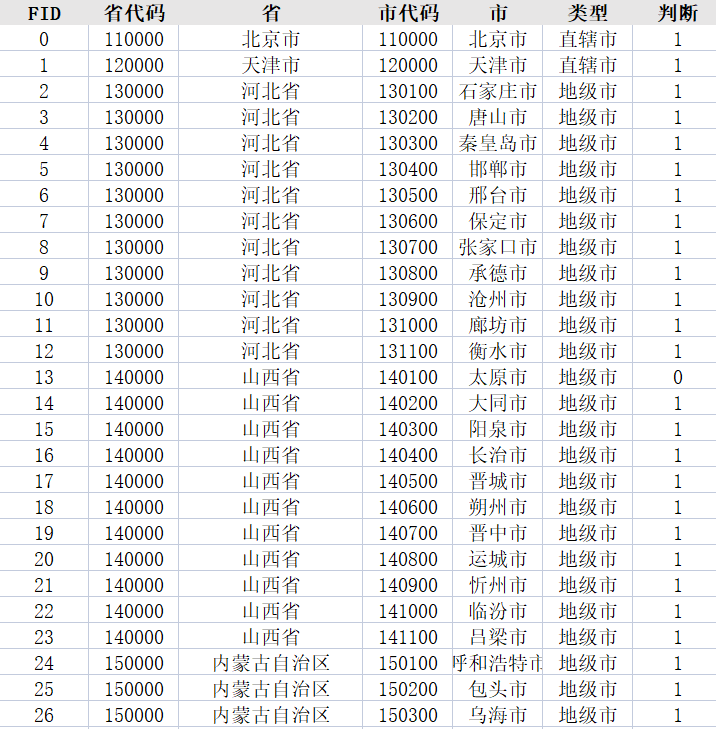 最近捣鼓了一份比较有趣的数据,该数据为中国省边界线上或者说与中国省边界线相交的城市名单,标记为1;反之,标记为0。本数据包含全国370个城市,属性十分详细,可见截图。