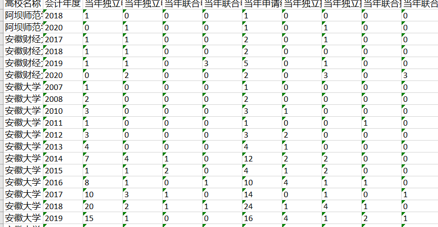 | [当年联合授权的绿色发明数量] | 高校当年联合授权的绿色发明数量,单位:个 |