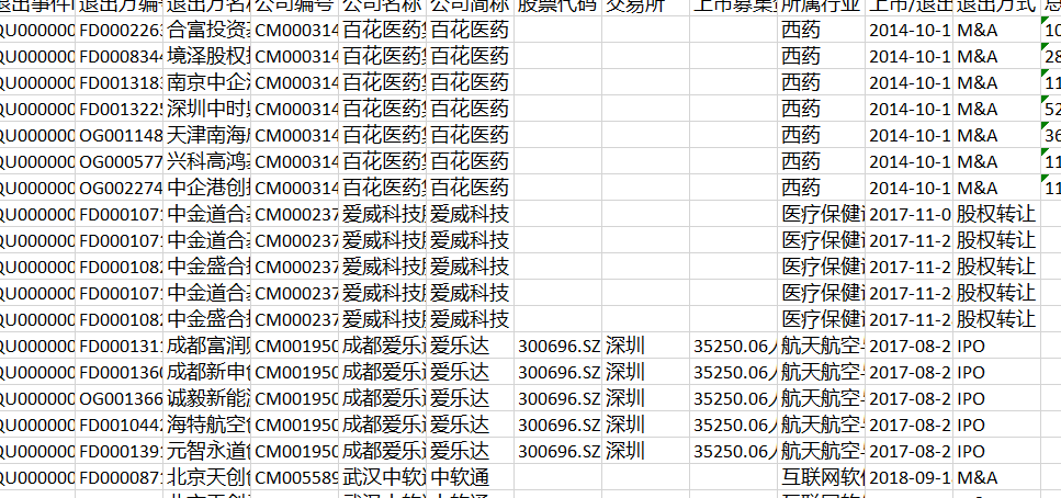 | [上市募集资金] | 退出公司的上市募集资金,单位:万 |