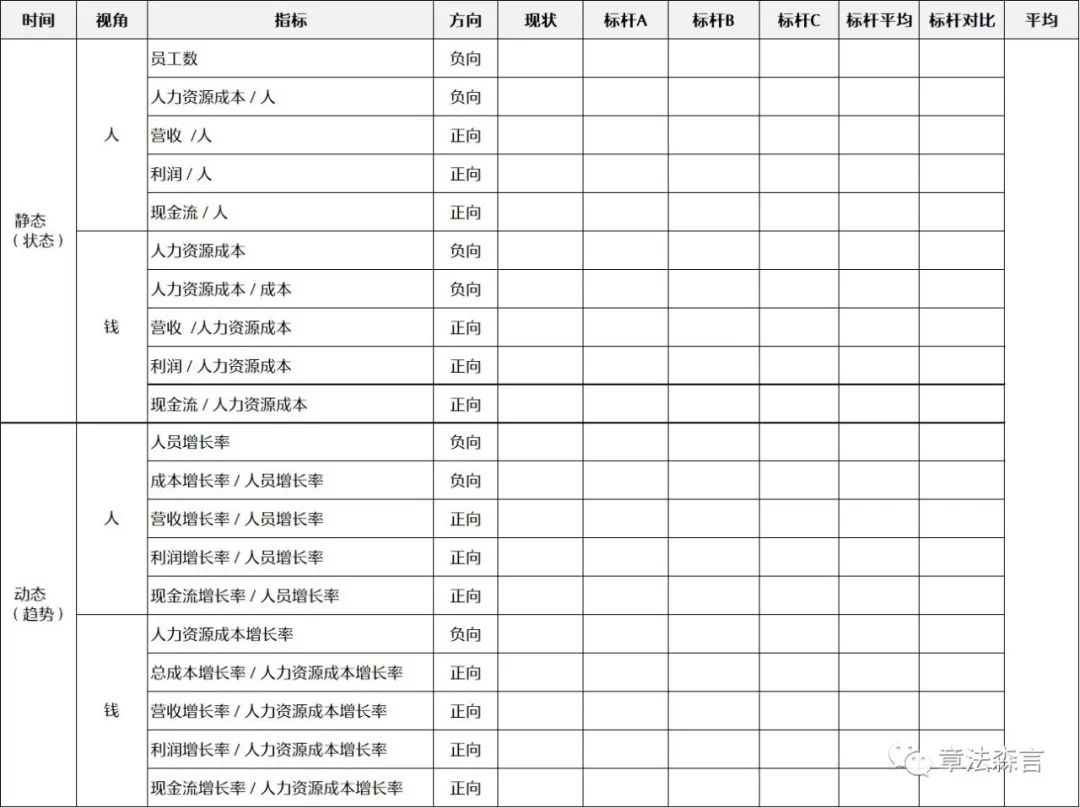 这是很多咨询公司通常会做的方式,通过收集组织所在市场的各个标杆企业(通常是上市公司,因为有财报,从财报种去抓举相关数据),来通过与标杆的对比来得到一个一个组织的“整体”的人效状态,从而对人效宏观状态进行诊断。
