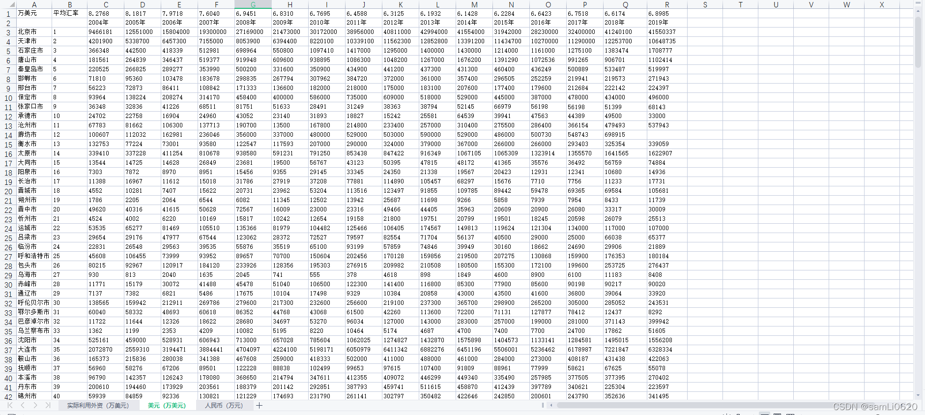 (1)2004-2019年地级市进出口贸易总额数据