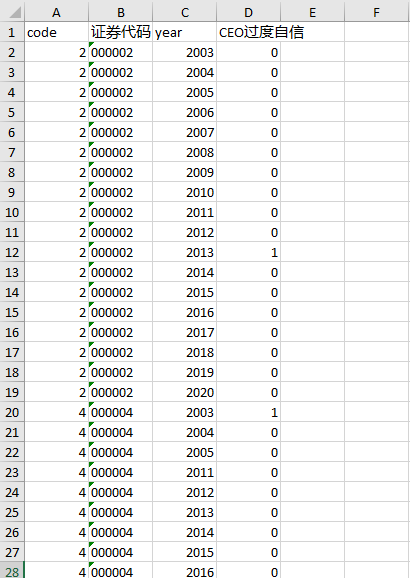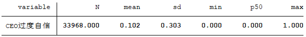 如果同时满足上述2个条件,则称CEO是过度自信的,令过度自信取1,非过度自信取0