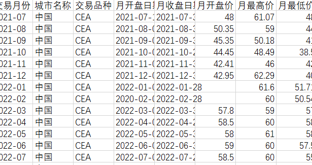 2021.7-2022.8碳市场排放权月交易信息