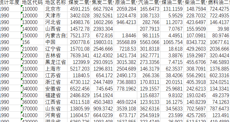 1990-2020全国各地区二氧化碳排放量(年),