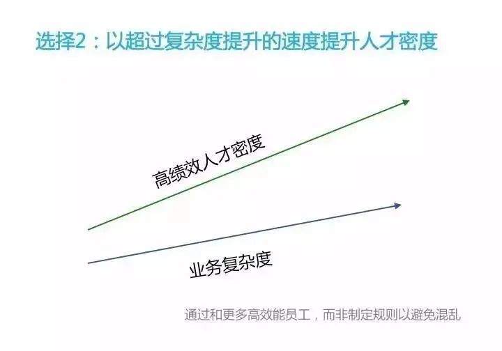 公司成长业务增加,核心的关键是让优秀人才的密度超过业务复杂度的增加。我们公司把这个总结为“和优秀的人做有挑战的事”
