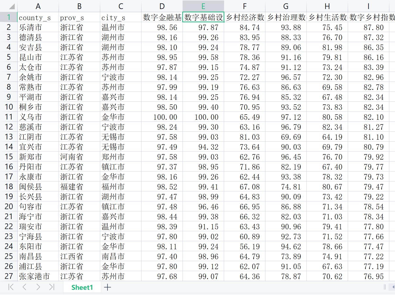 数字乡村指数数据