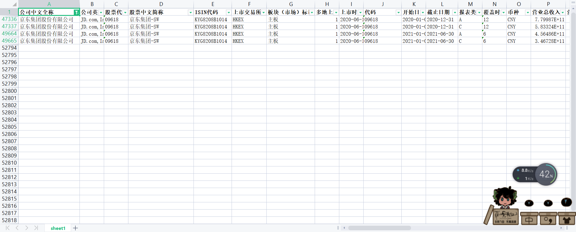 2020年12月-2021年6月海外上市京东集团-SW京东集团股份有限公司财务报表数据