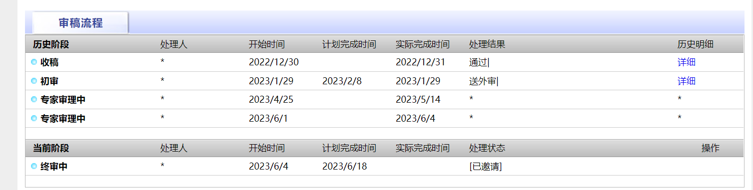 1186107939 发表于 2023-6-30 22:02 您看我的审稿截图:意思是,正常情况下应该是一行专家审理中吗?一行专家审理中表示有2个外审专家审稿?如 ...