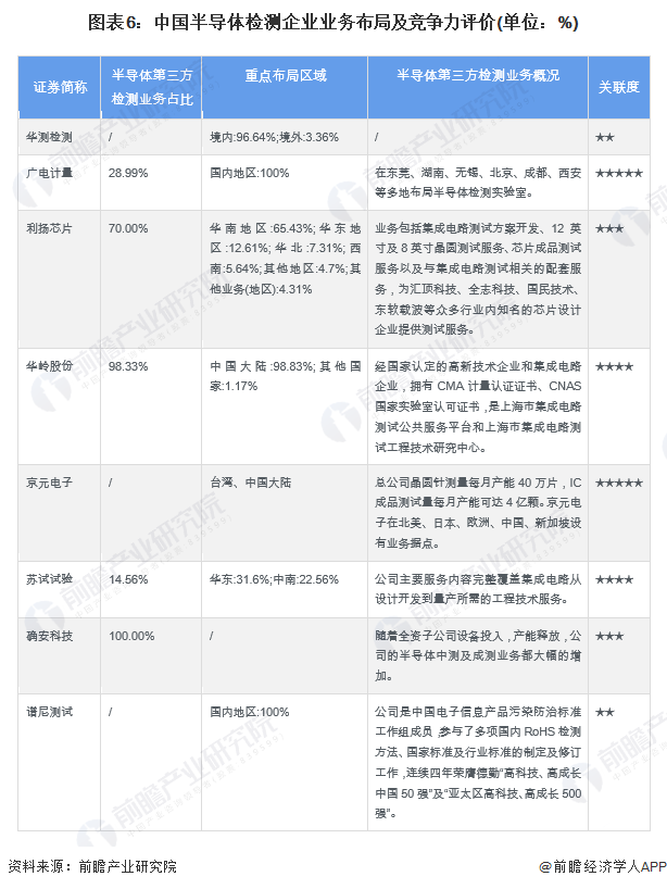 文章汇总中国半导体检测行业企业布局及竞争力情况如下: