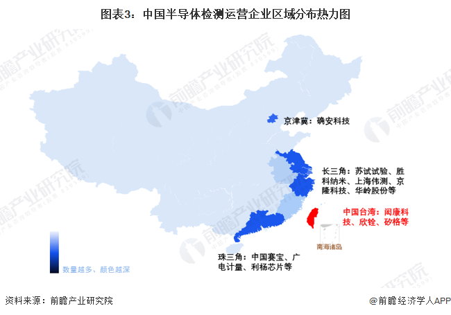 汇总分析中国半导体检测代表企业分布情况,与半导体产业发展同步,中国大陆长三角、珠三角地区相关半导体检测代表企业较为密集。
