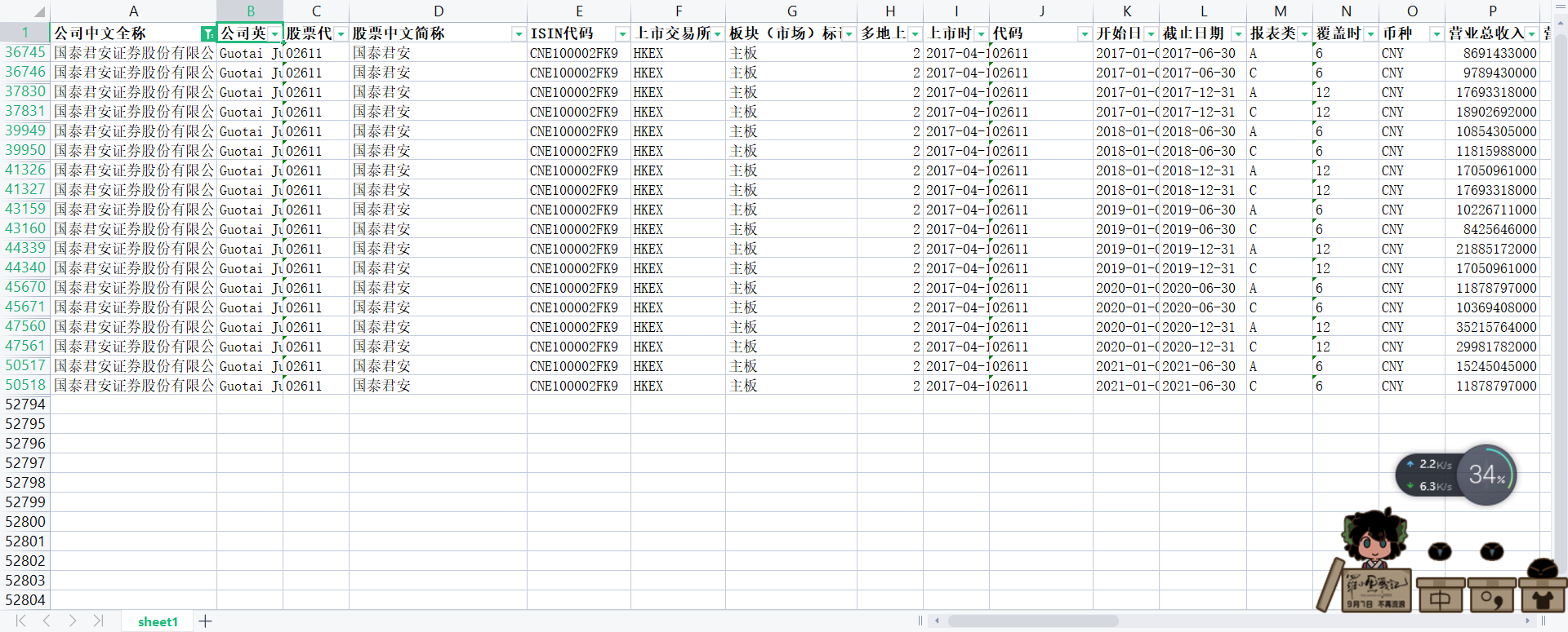2017年6月-2021年6月海外上市国泰君安国泰君安证券股份有限公司资产财务报表数据