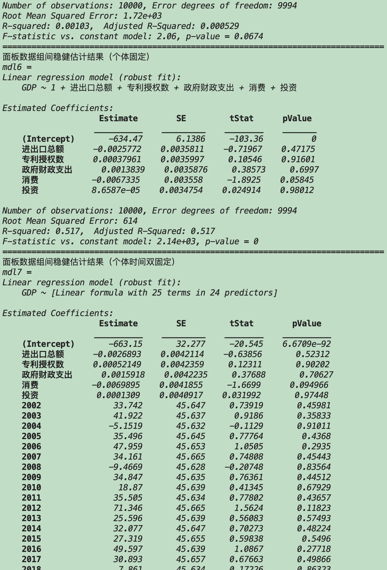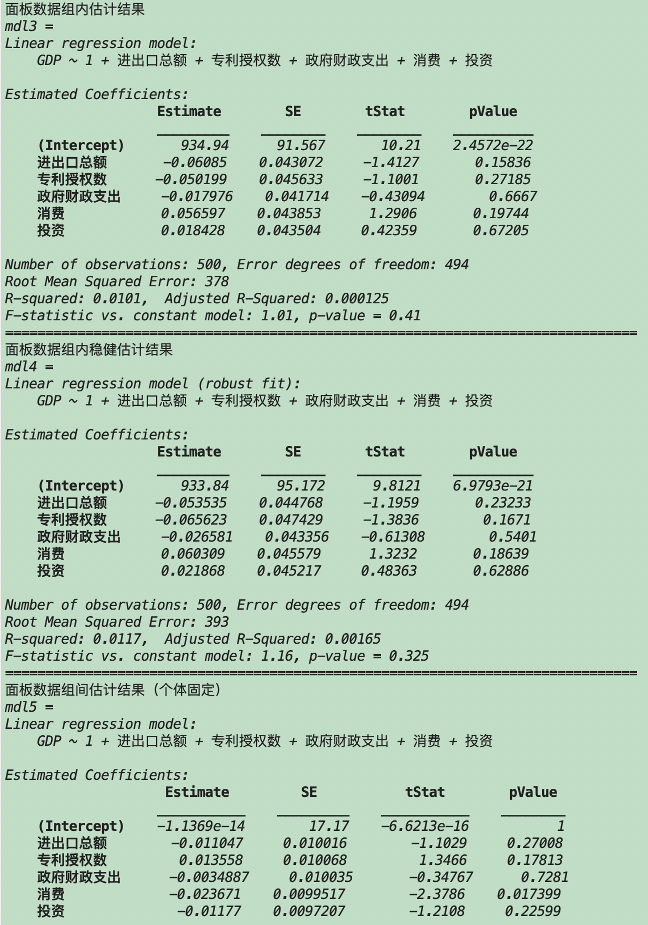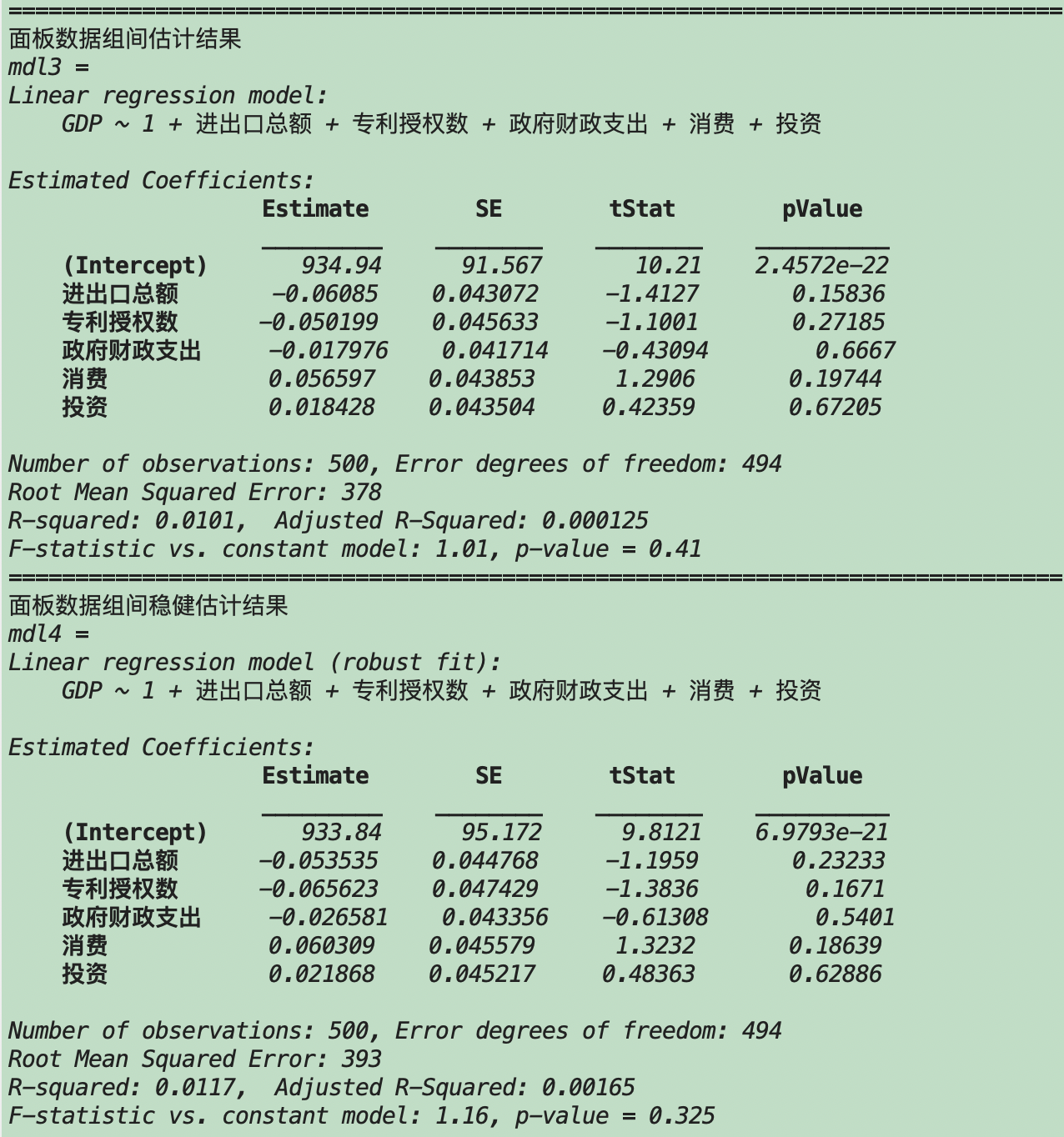 基于Matlab的面板数据线性回归分析