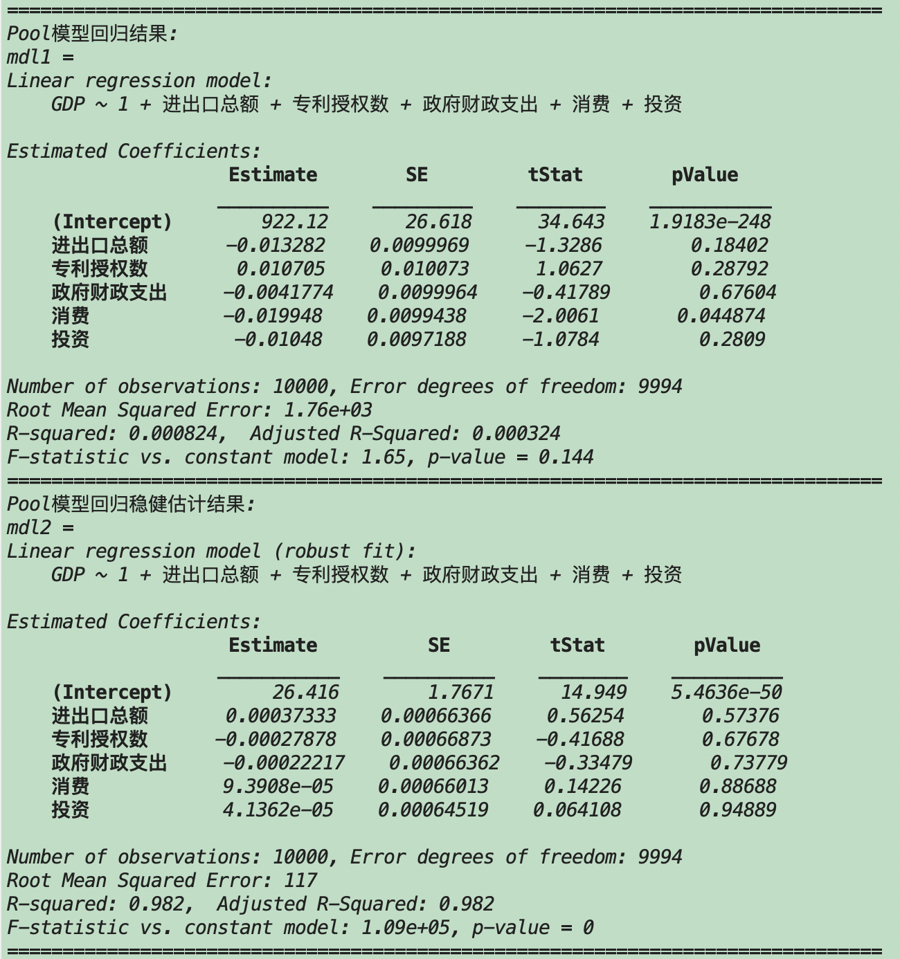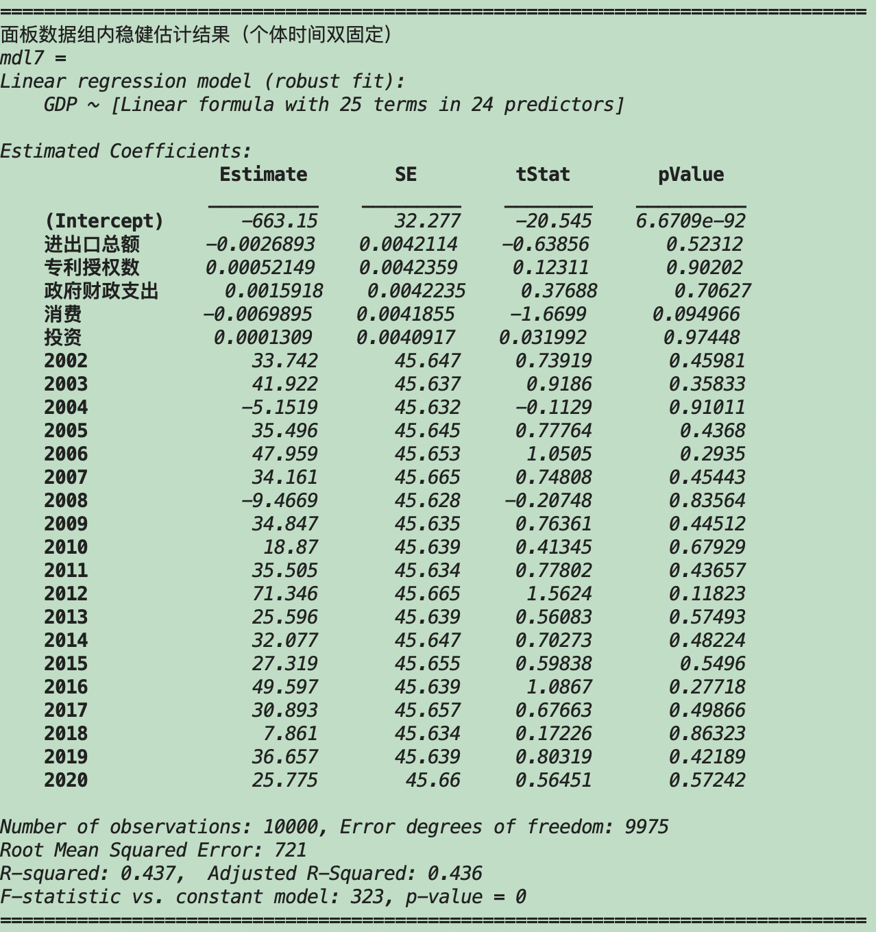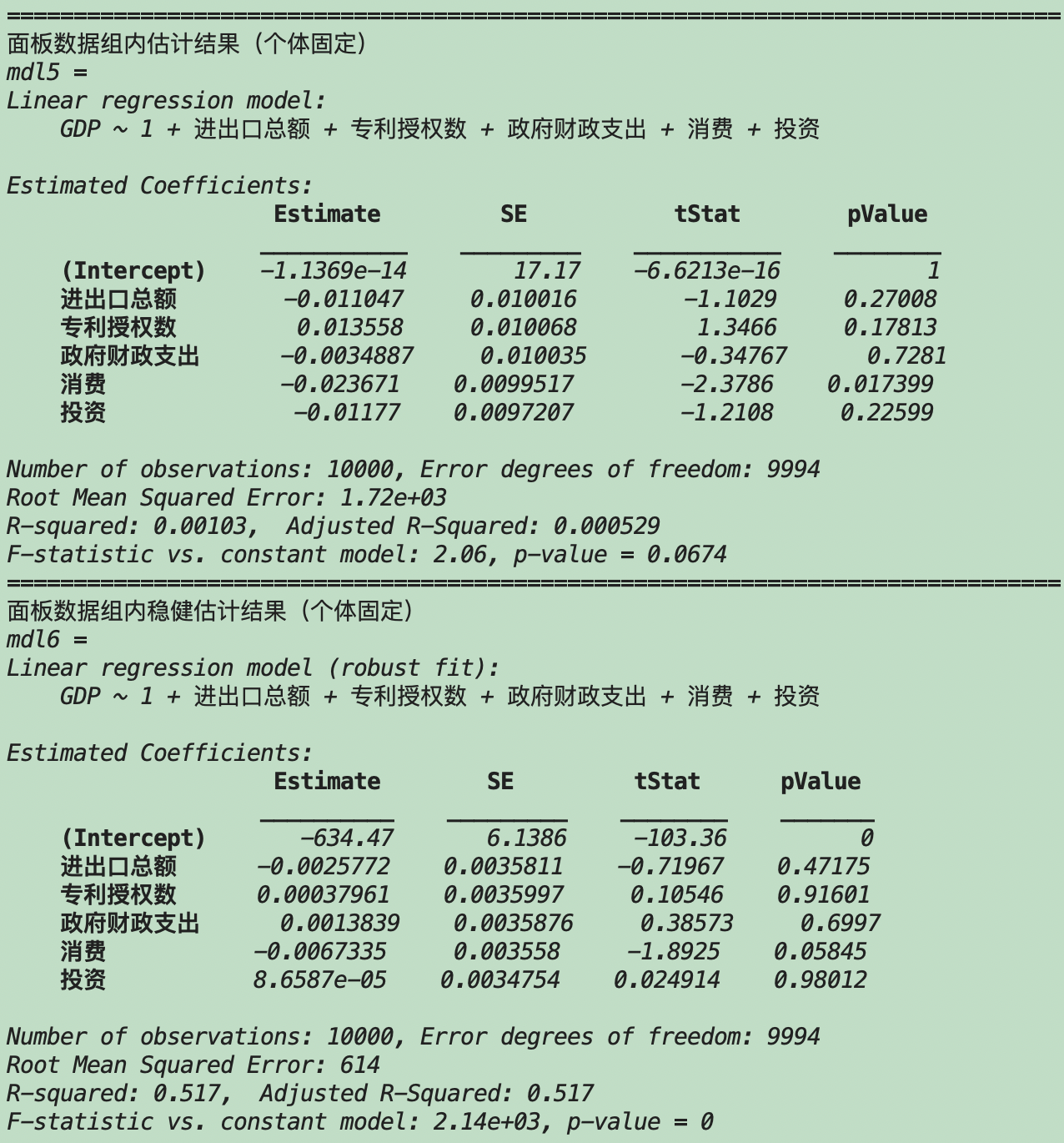 基于Matlab的面板数据线性回归分析