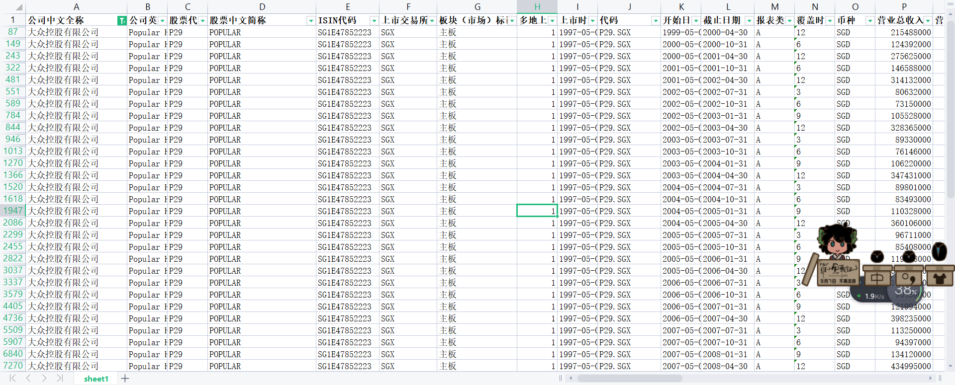 2000年4月-2010年10月海外上市POPULAR大众控股有限公司财务报表数据