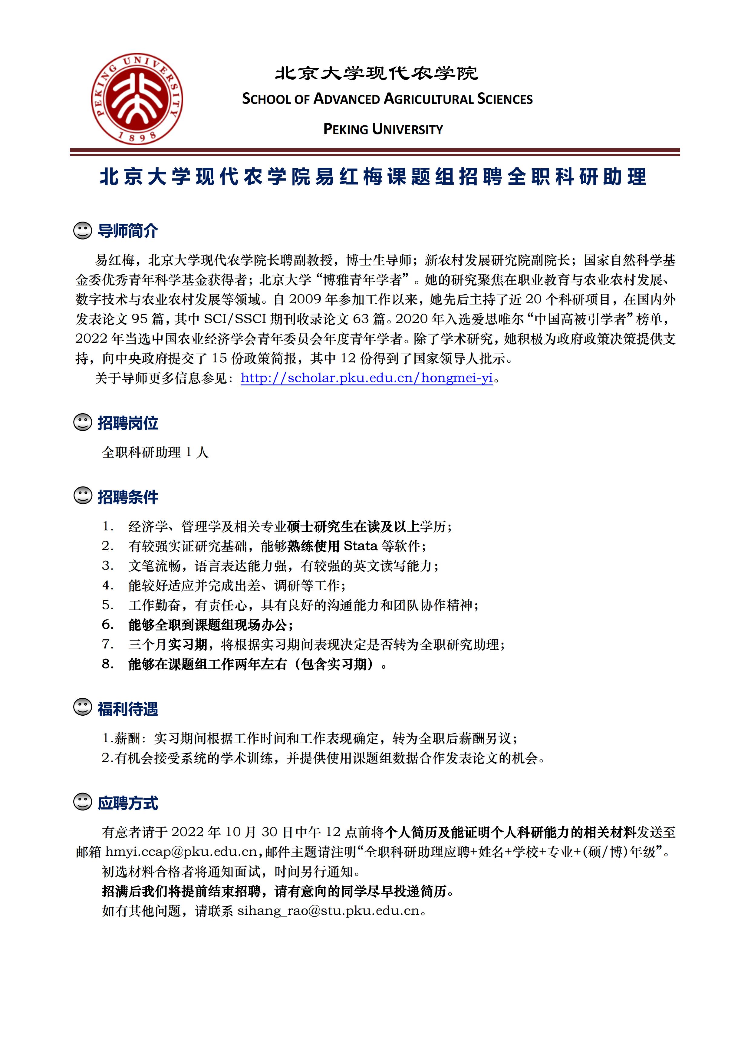 北京大学现代农学院易红梅老师课题组