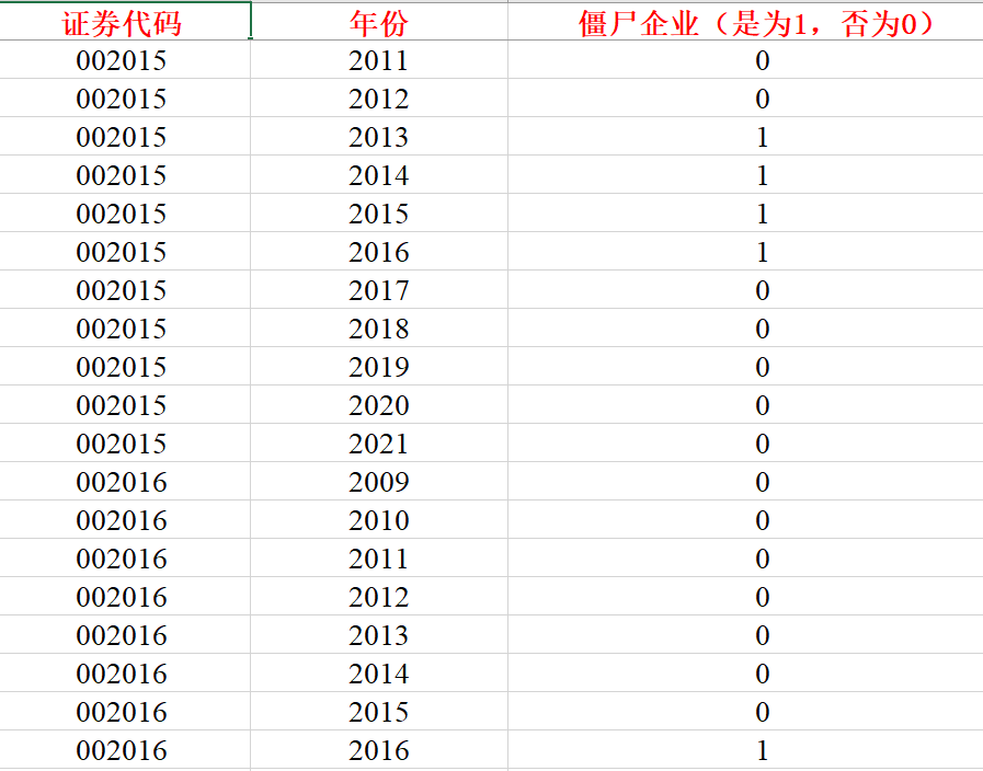 2009-2021年中国上市企业僵尸企业数据,样本时间新,数据量大,基本可以满足毕业论文写作和科研需求。数据真实可靠,辛苦整理所得,分享给大家,希望对论坛各位同学毕业论文以及论文发表有所帮助。分享这份数据一是为了贴补家用,二是为了共享知识,希望诚心需要的同学下载使用,使用过程中如有任何疑问,可以加q2961096086交流心得。衷心祝愿论坛各位同仁毕业和发文顺利!整理的非常完整,十分规范,排版也很漂亮,节省您大量收集与整理时间,绝对物有所值!