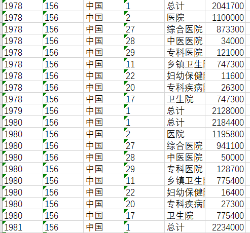 1978-2020各地区医疗卫生机构床位数统计表.xlsx