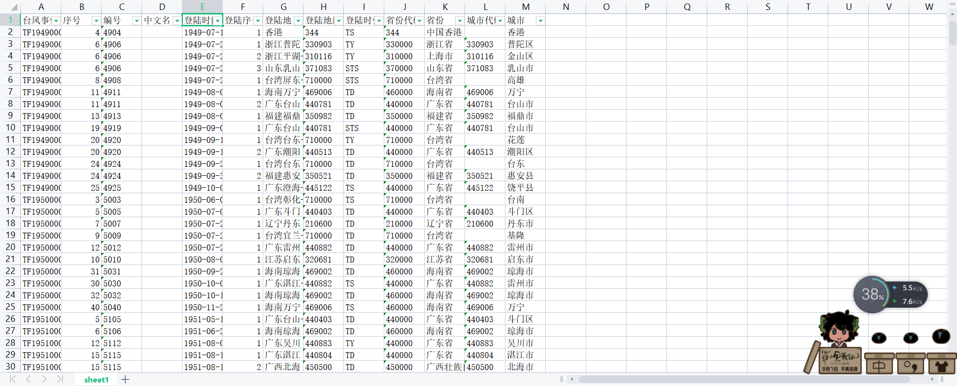 | [省份代码] | 台风登陆地所属省份代码 |