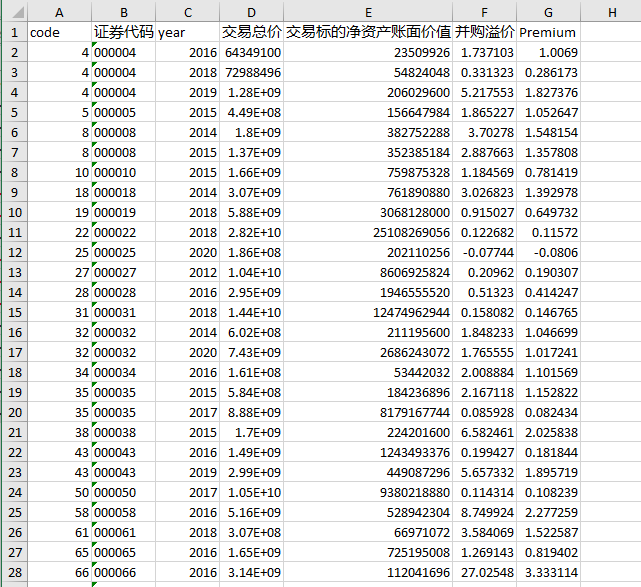 1999-2021年并购溢价,并购溢价率大小(stata计算)