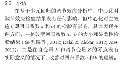 2. **解释系数方便**:经过中心化后,模型中的截距项(常数项)可以被解释为样本均值处的预测值。同时,当X和M都进行中心化后,在没有交互效应时,a和b可以直接被解读为中心化后的自变量与因变量关系的斜率。