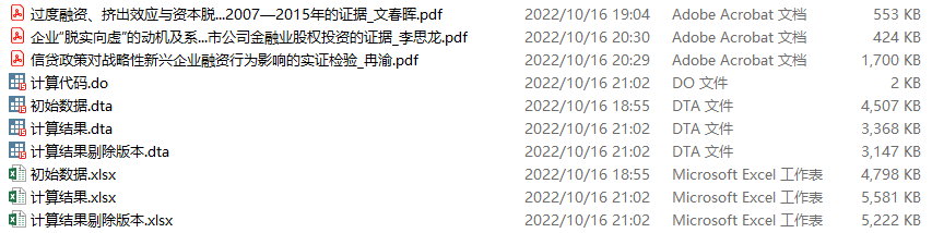版本2:在做了上述剔除处理的基础之上,同时剔除了金融行业的样本和当年年末被ST、*ST或PT的上市公司,文件名为“计算结果剔除版本”